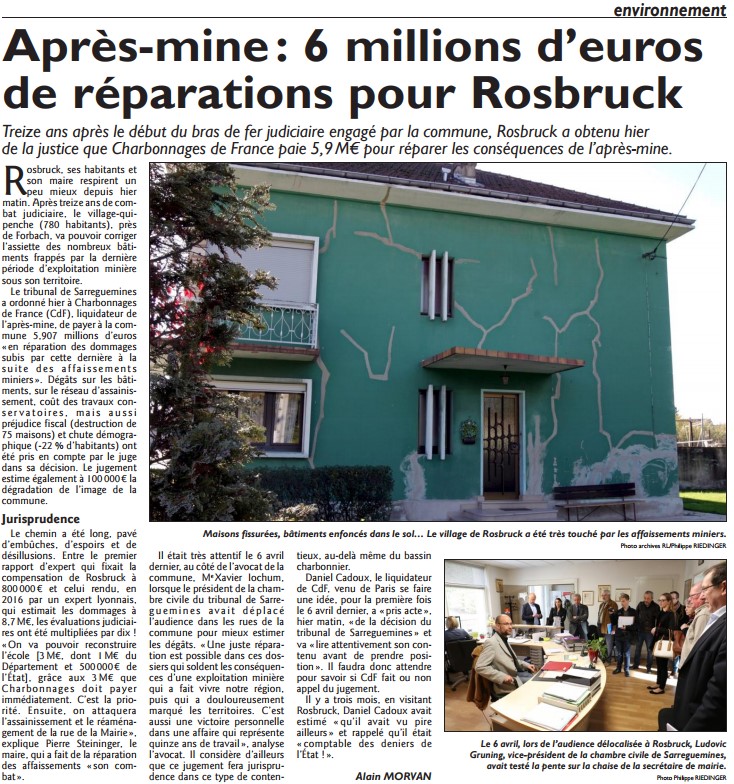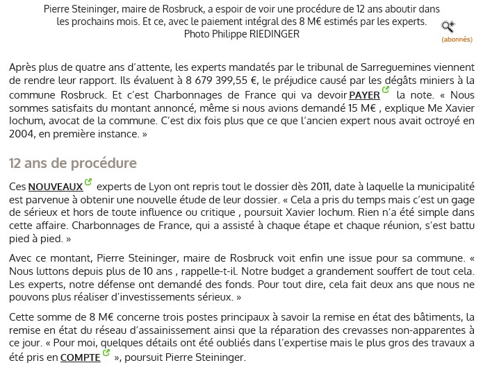 Charbonnages de France à payer à la commune une provision d’1M€. Aujourd’hui,